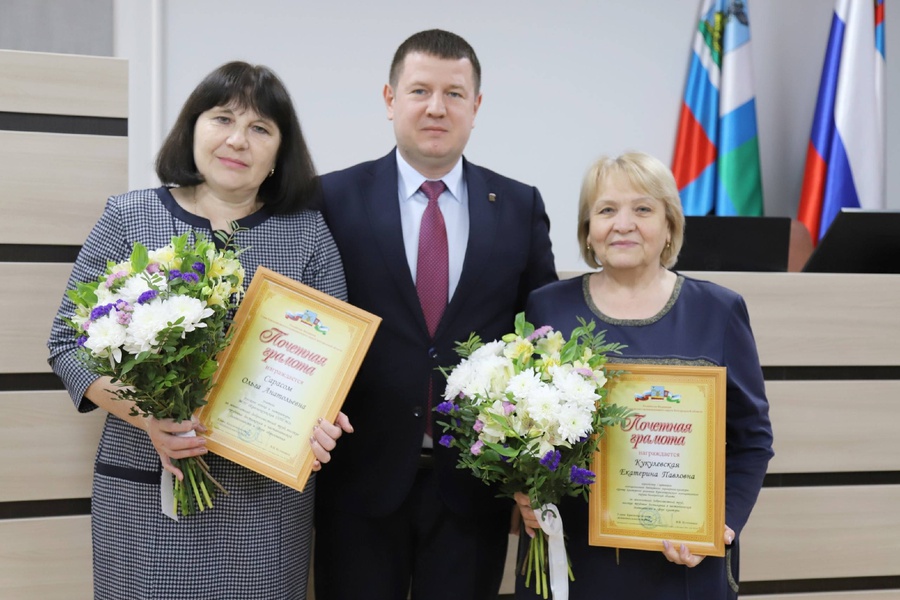 Виталий Кутоманов поблагодарил учителя русского языка и литературы Краснояружской СОШ №2 Ольгу Сарасом и хормейстера Краснояружского Центра культурного развития Екатерину Кукулевскую за их многолетний добросовестный труд, высокие результаты в наставничестве, значительный вклад в развитие подрастающего поколения и искреннее служение людям.