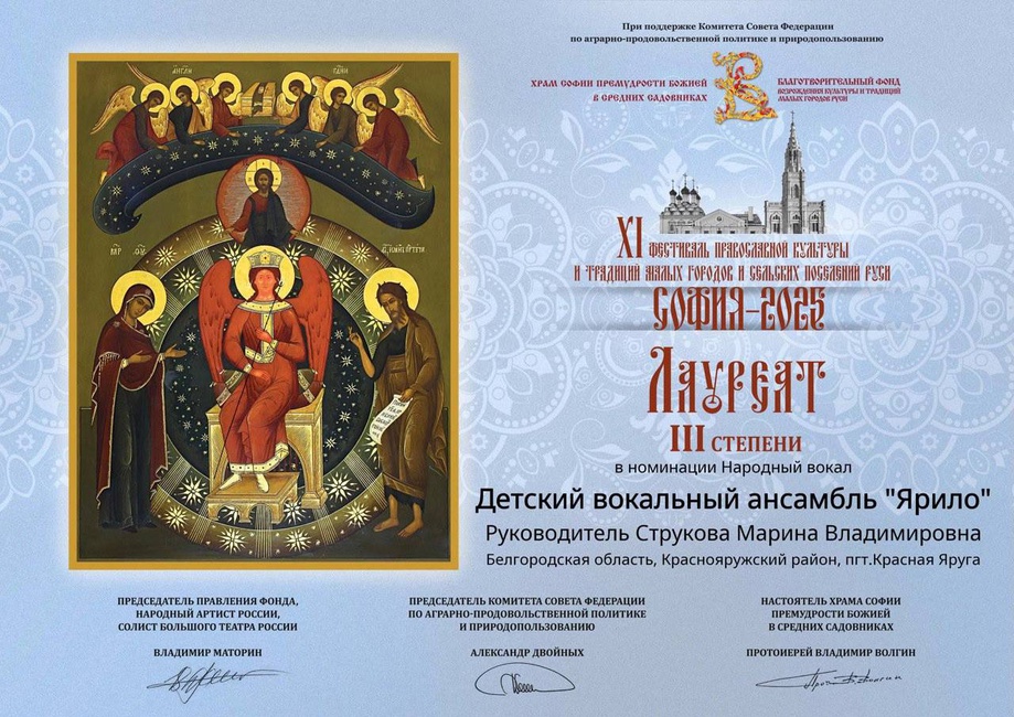 В рамках XI фестиваля православной культуры и традиций малых городов и сельских поселений Руси «София–2025» сразу два коллектива стали лауреатами III степени в номинации «Народный вокал»: