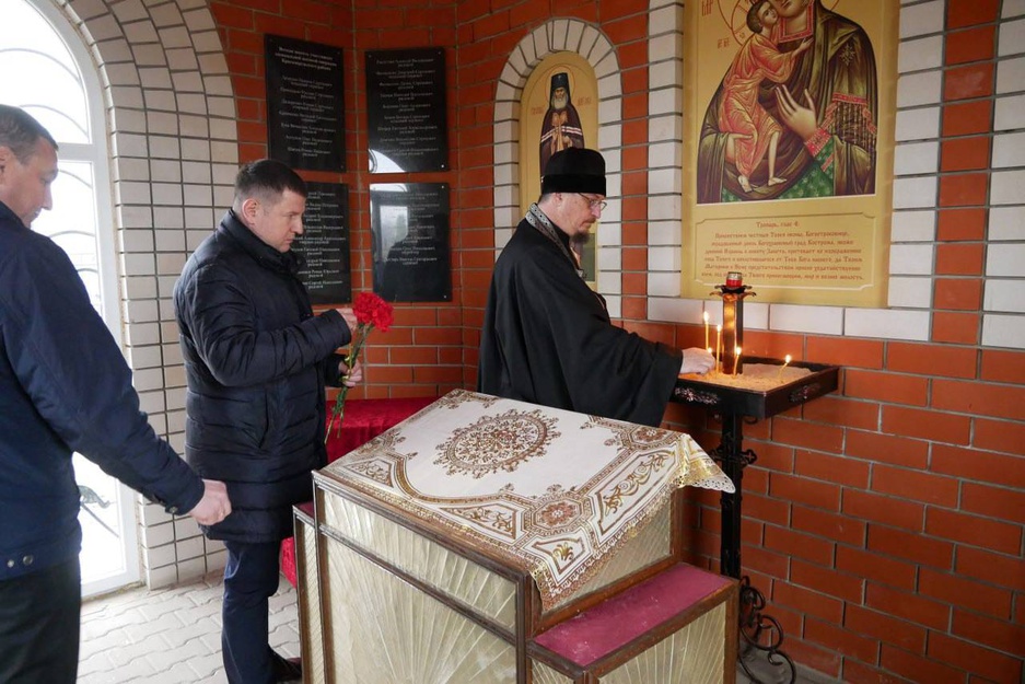 После панихиды участники почтили память погибших и возложили цветы к памятным табличкам с именами наших земляков — защитников и мирных жителей — в часовне Федоровской иконы Божией Матери.