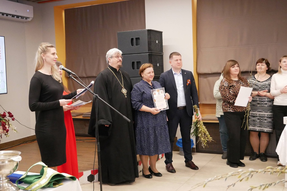 Благочинный Краснояружского округа церквей, протоиерей Сергий Сунденко поздравил всех с православным праздником и вручил участникам ярмарки благодарственные грамоты Краснояружского благочиния за большой вклад в дело благотворительности.