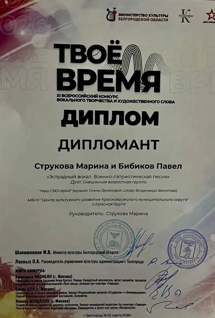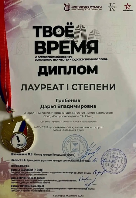 Наши талантливые артисты удостоины высоких наград на XI Всероссийском конкурсе "ТВОЁ ВРЕМЯ-2026"!